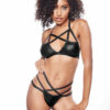 A desire infused 2 piece set that will inspire you both to reach new heights of pleasure. Strappy shoulder straps criss crossing in front add a rush of sweetness to the bralette and the crotchless strappy panty is the extra blush factor.