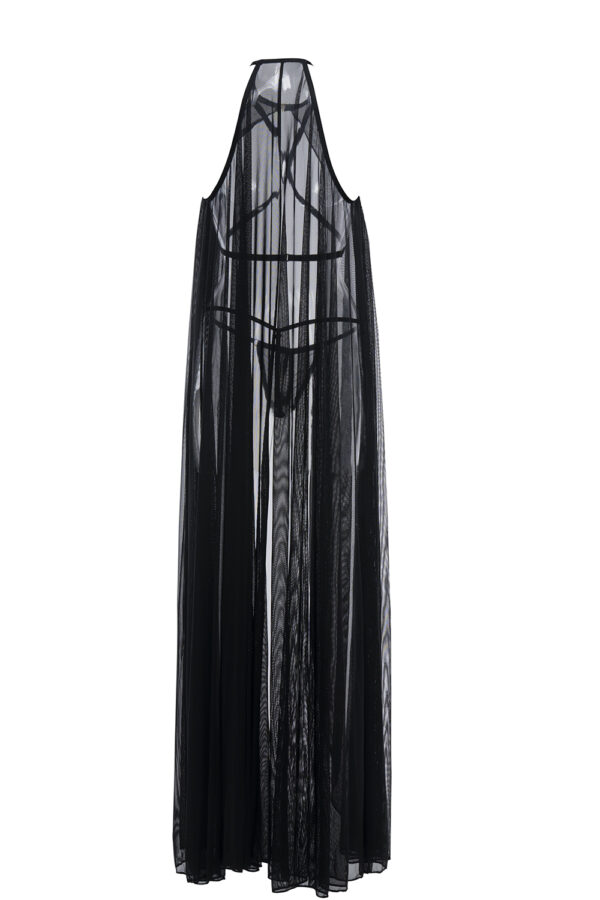 If undressing is an art…then this piece is a masterpiece.  This shoulder baring sheer mesh cape is absolutely divine with adjustable criss-cross body straps to contour and highlight your best assets.  Definitely a must have for effortless boudoir dressing.  Comes with an open front G-string