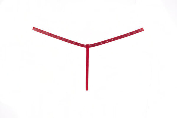 Goes literally ‘under’ everything… Delicate lace detailing in front, with rhinestone waist strap. Elastic G-String back.