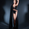 Mesh bolero cape with latex-look vinyl trim ( G-string included)Sizes : One Size